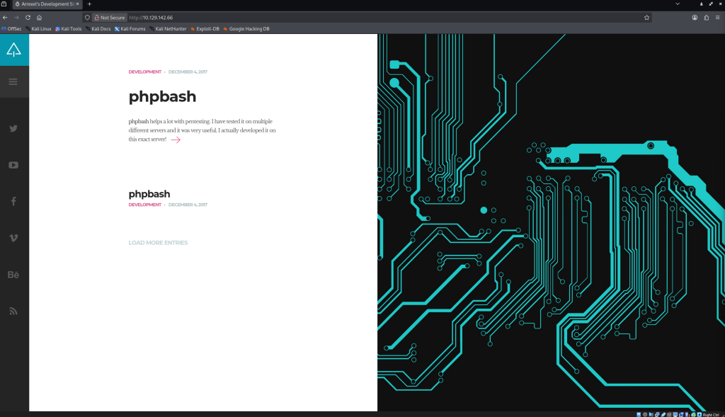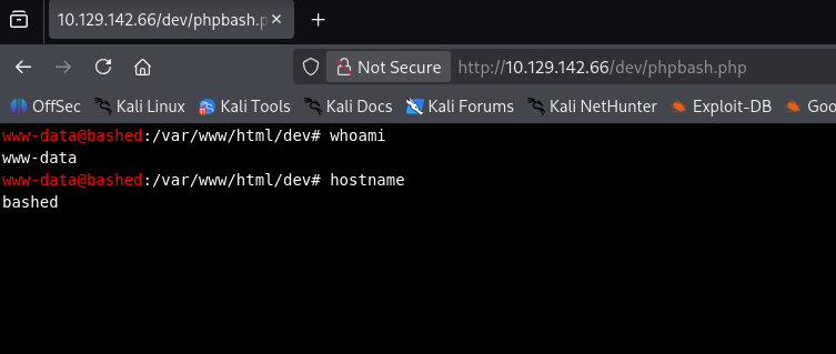 Loading up the phpbash.php file reveals the Kali-Linux like terminal described.